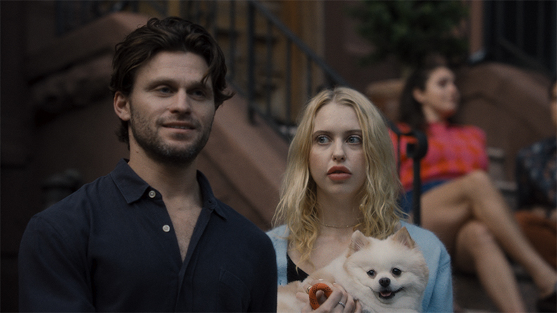 Catherine Cohen and Aristotle Athari lead as Valerie and Doug, a thirty-something couple who embody the quintessential creative burnout of New York living. They’re pretentious but relatable, the kind of people who see themselves as victims of everyone else’s chaos. Their constant annoyance with their younger, wilder neighbors forms the backbone of the film—a battle of generations and egos set in the world’s tiniest apartment complex.